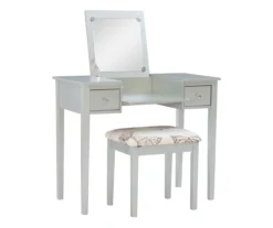 Merci 2-Piece White & Walnut 2-Drawer Lifting Mirror Vanity Set