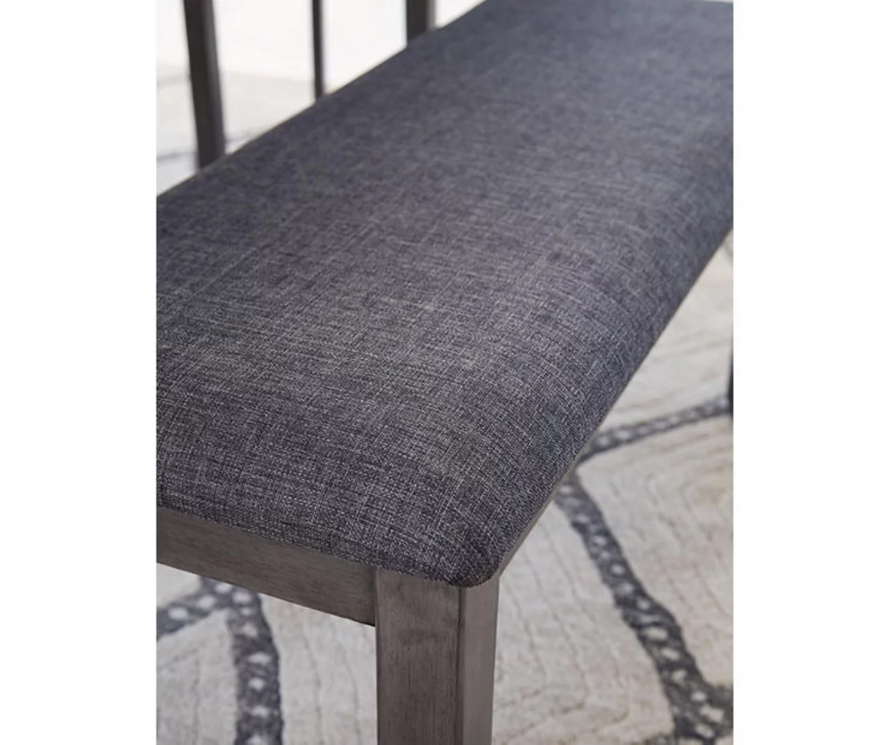 - Cushioned seats upholstered in textured gray polyester