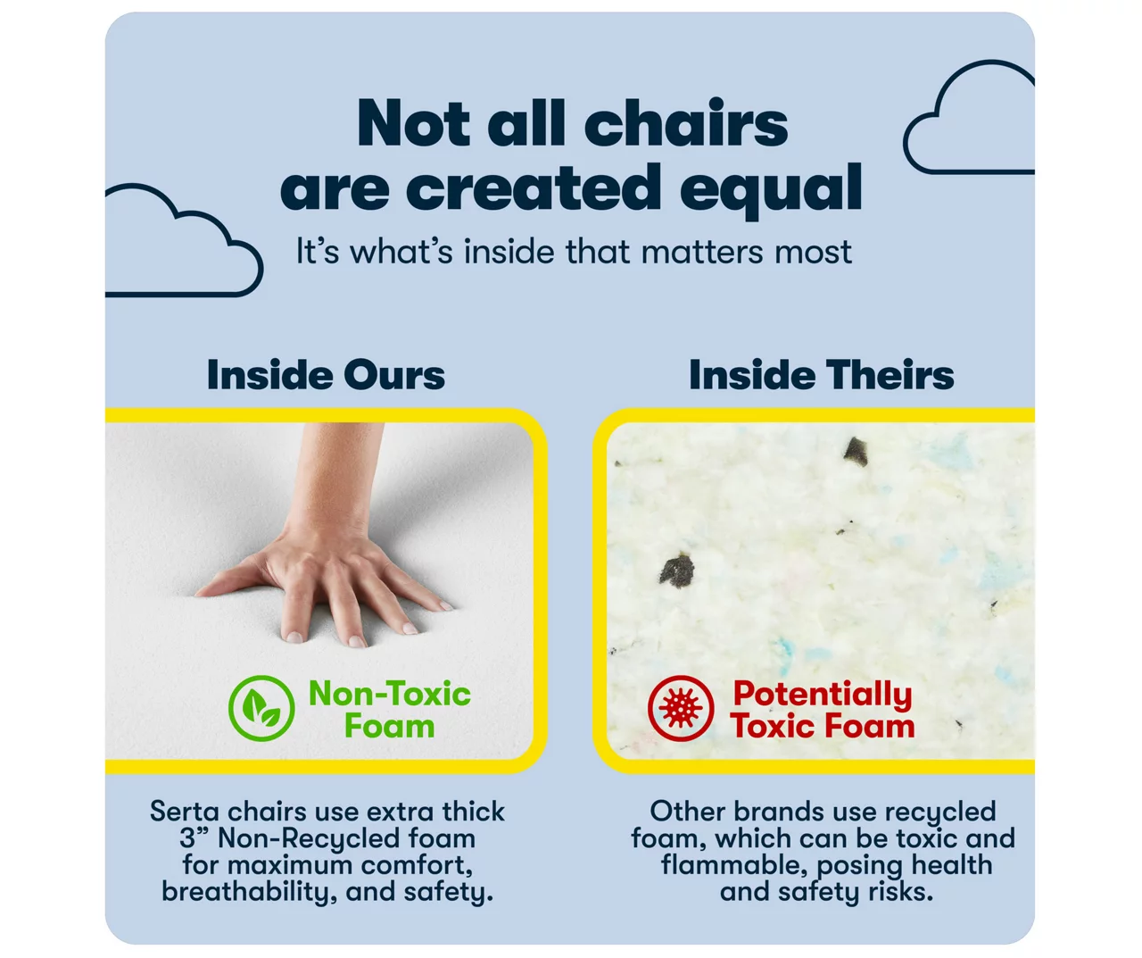 From a trusted brand committed to offering uncompromising quality, comfort and style, the Serta Big and Tall Executive Office Chair is not your average office chair. This heavy-duty office chair is made with a more generous design to support taller and larger body types as big and tall commercial-grade components ensure stability and durability to stand up to wear and tear. The layered body pillows on this ergonomic office chair provide cushioned comfort, to help alleviate discomfort caused by sitting throughout your workday. Height and tilt adjustments let you position this executive chair to improve body alignment, while arm controls provide optimal placement for your hands, wrists and forearms. The contoured lumbar zone is also adjustable to relieve stress on your lower back. Finished in Puresoft faux leather material, this Serta office chair is low-maintenance and looks great in any office environment.