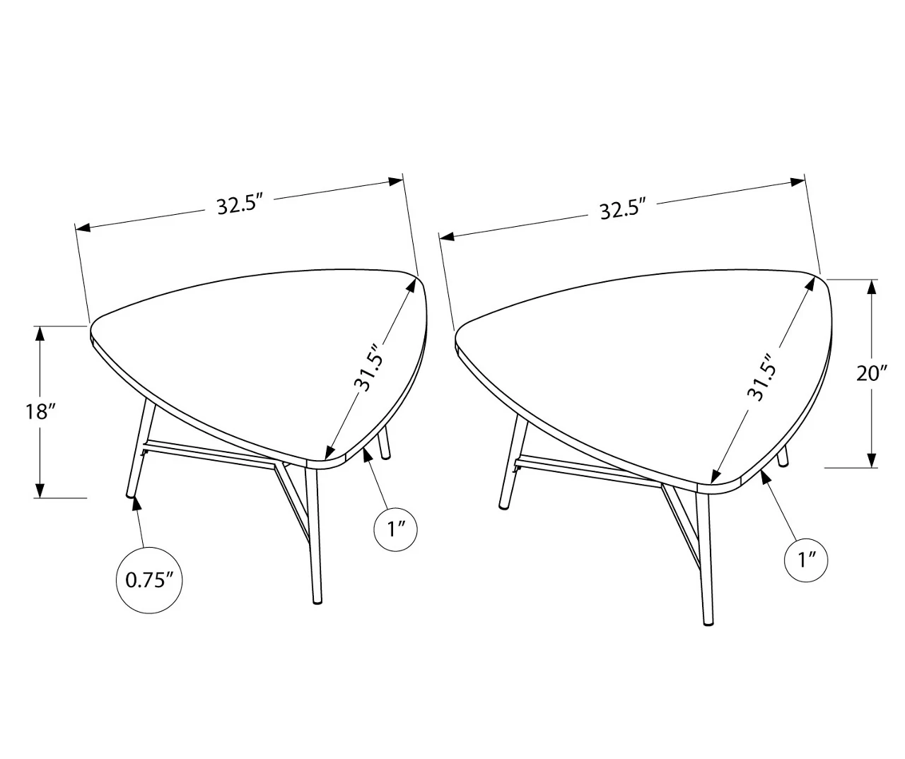 For an easy upgrade to any living space, add these mid-century inspired coffee tables to your home. Their laminate tops recreate the rustic touch of reclaimed wood while the black tripod-shaped legs lend an industrial feel. Designed to neatly stack, both tables have the same surface size but different heights. Separate them to double your surface space or tuck them together to save room.