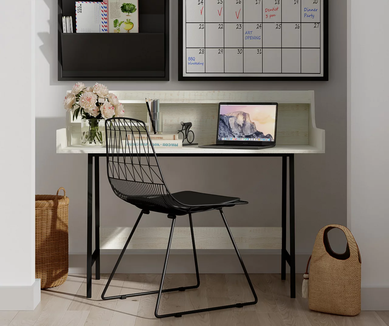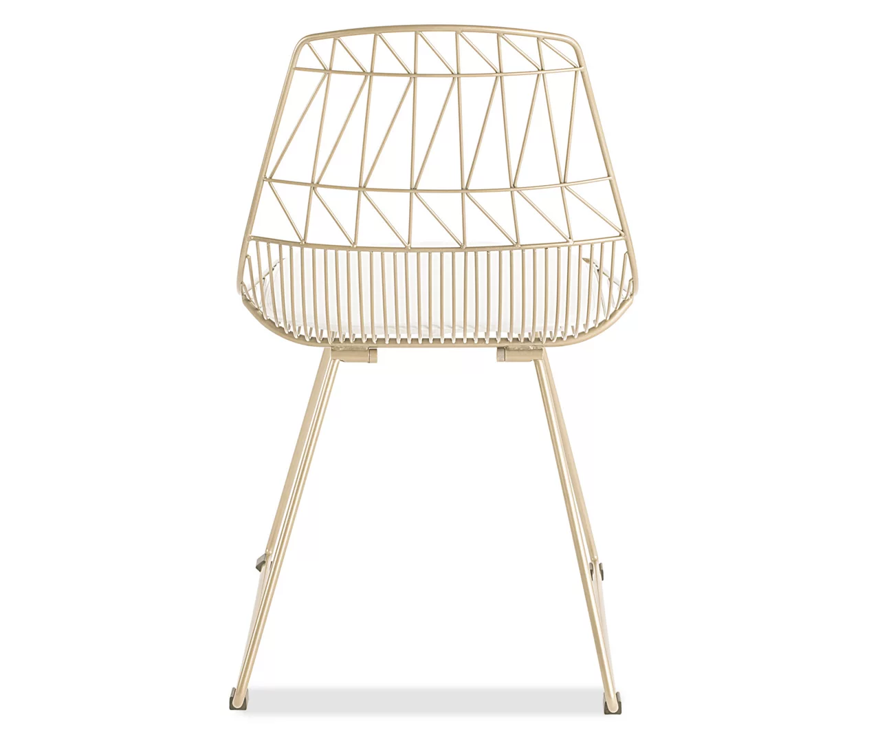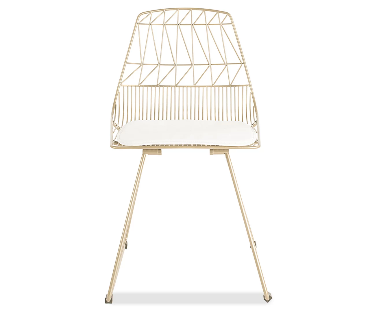 These art deco-inspired metal chairs are perfect for adding major style and zing to smaller spaces. The intricate geometric pattern is distinctive and, well, adorable, while the white padded seat comforts and supports. This set of two chairs is perfect for adding to a breakfast nook or dining room table.
